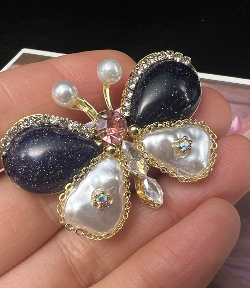 Brosche „Schmetterling“ – luxuriöses Schmuckstück mit Strasssteinen aus Natursteinen.