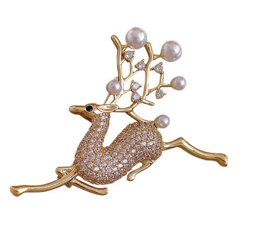 Elegante Brosche in Form eines Hirsches funkelnden Strasssteinen. Diese wunderschöne Weihnachtsbrosche bringt festliche Stimmung und Glanz in jedes Outfit!