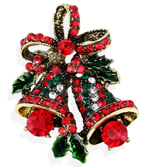 Verleihen Sie Ihrem Outfit einen festlichen Glanz mit dieser eleganten Weihnachtsbrosche in Form von Glocken!