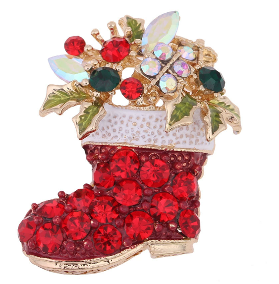 Eine elegante Brosche in Form eines Weihnachtsstiefels funkelnden Strasssteinen. Diese süße Weihnachtsbrosche bringt festliche Stimmung und Glanz in jedes Outfit!